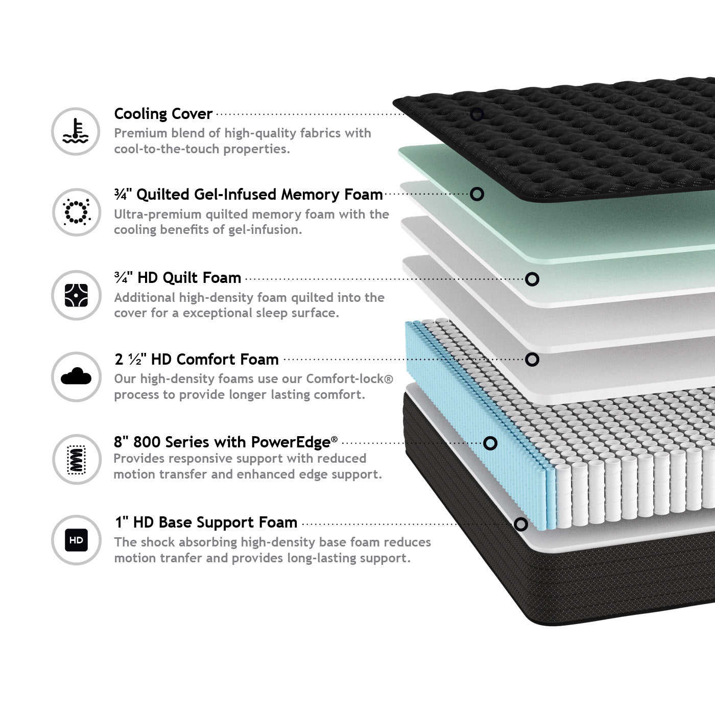 Experience "the sleep of your dreams" with the Independence Firm! This 13" hybrid mattress delivers superior comfort with its individually wrapped coils, prestressed HD comfort foam, and quilted gel-infused memory foam. Plus, the Power Edge coils combined with our premium blend of fabrics with cool-to-the-touch properties guarantee a good night's sleep that lasts!