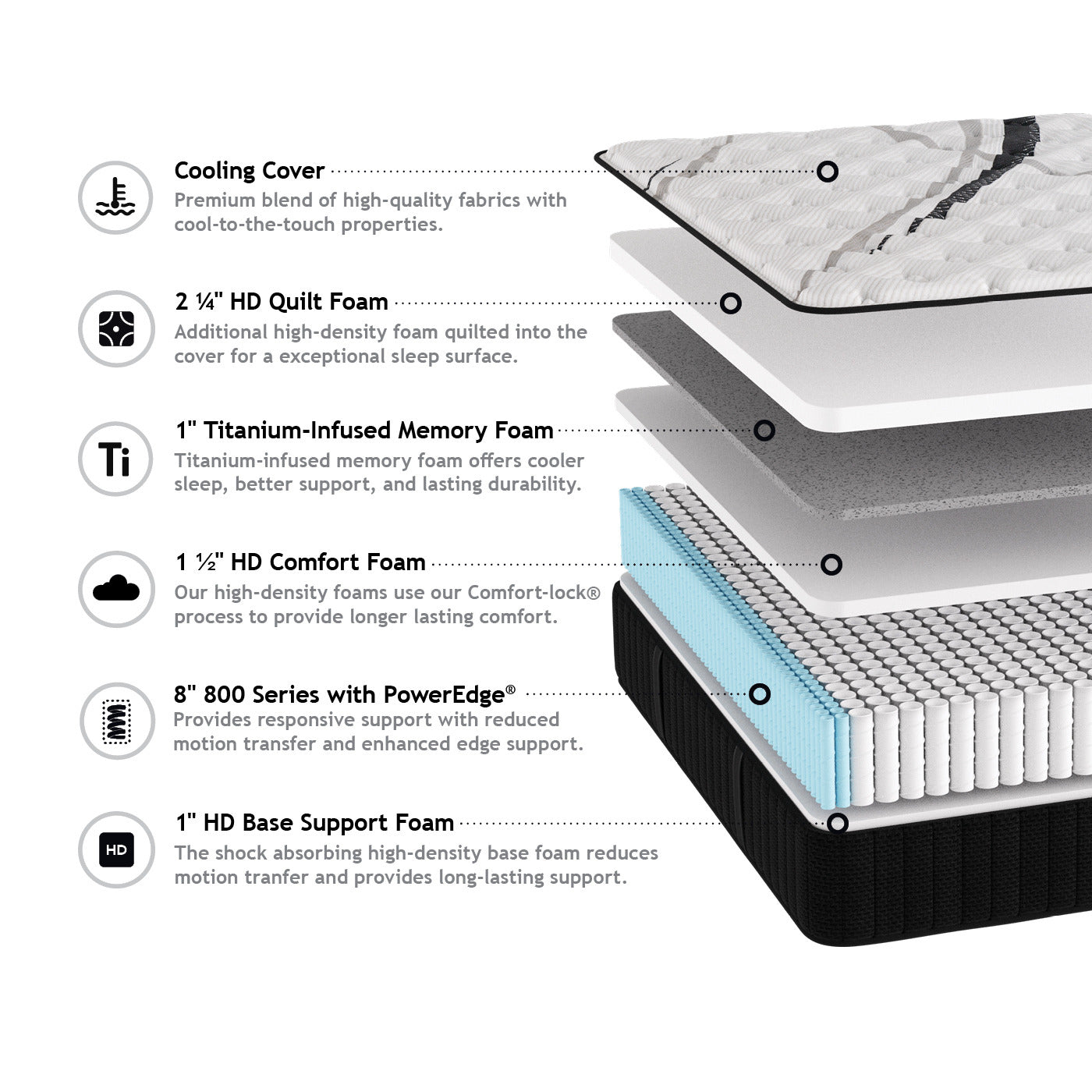 Indulge in superior comfort with the Liberty Medium mattress. Its substantial 13.5" design incorporates a Titan HD Support Core featuring robust wrapped coils, enhanced by titanium-infused memory foam for optimal temperature management and extraordinary support. The HD Quilt Foam offers an elegant sleep surface, while CertiPUR-US certification provides assurance of quality. Engineered for adjustable bed compatibility and protected by a comprehensive decade-long warranty, this distinguished sleep system ensures lasting comfort and unwavering stability. Also, available in specialized R.V. dimensions for discerning travelers.