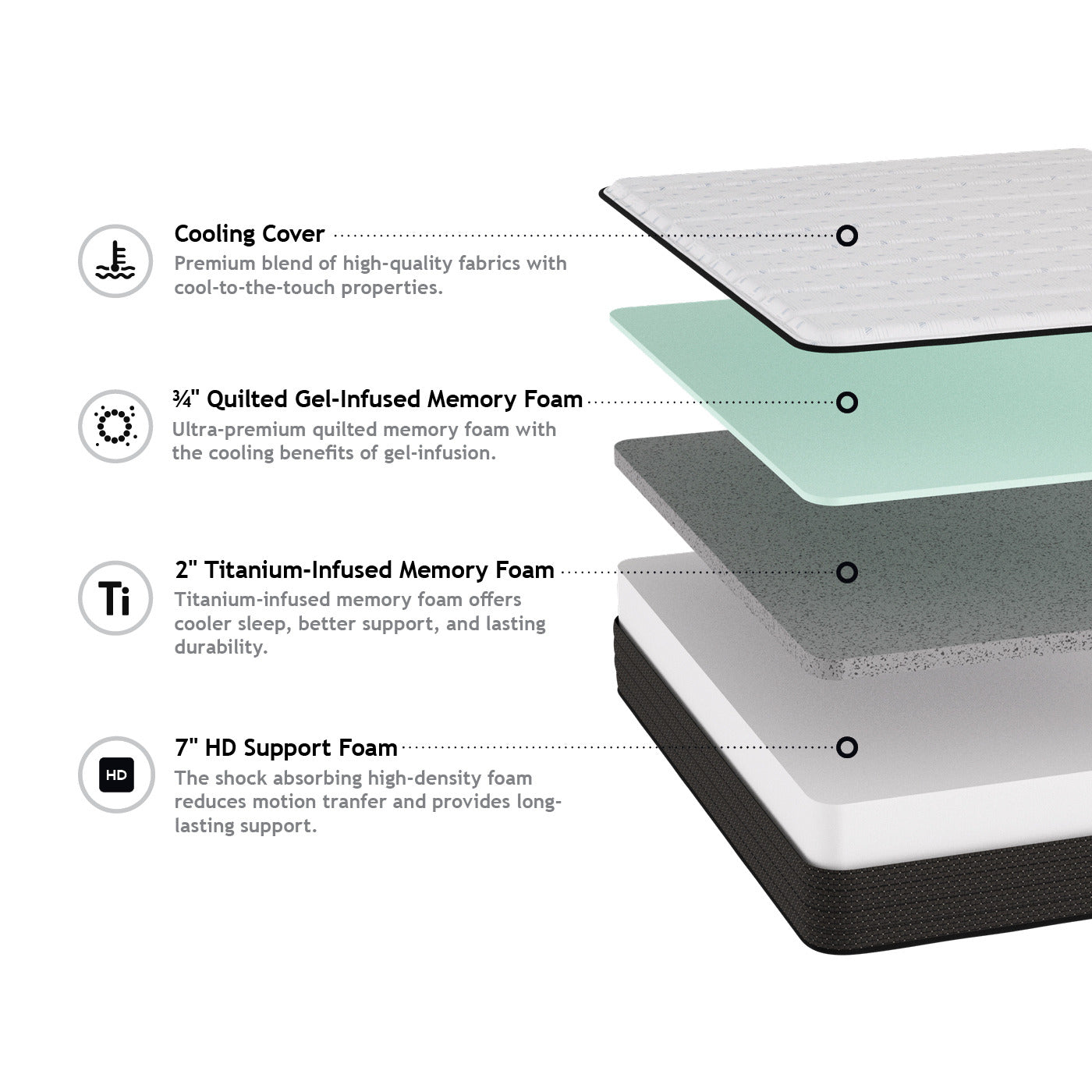 Experience unparalleled comfort with our Patriot's Choice 10" Medium Memory Foam mattress. This refined sleep system incorporates titanium-infused memory foam for optimal temperature management, paired with luxurious quilted gel-infused memory foam beneath a cooling surface. Meticulously constructed using CertiPUR-US certified materials and designed for adjustable base compatibility, this premium American-crafted mattress delivers a decade of restorative sleep, protected by our comprehensive 10-year warranty. Also, available in specialized R.V. dimensions for discerning travelers.