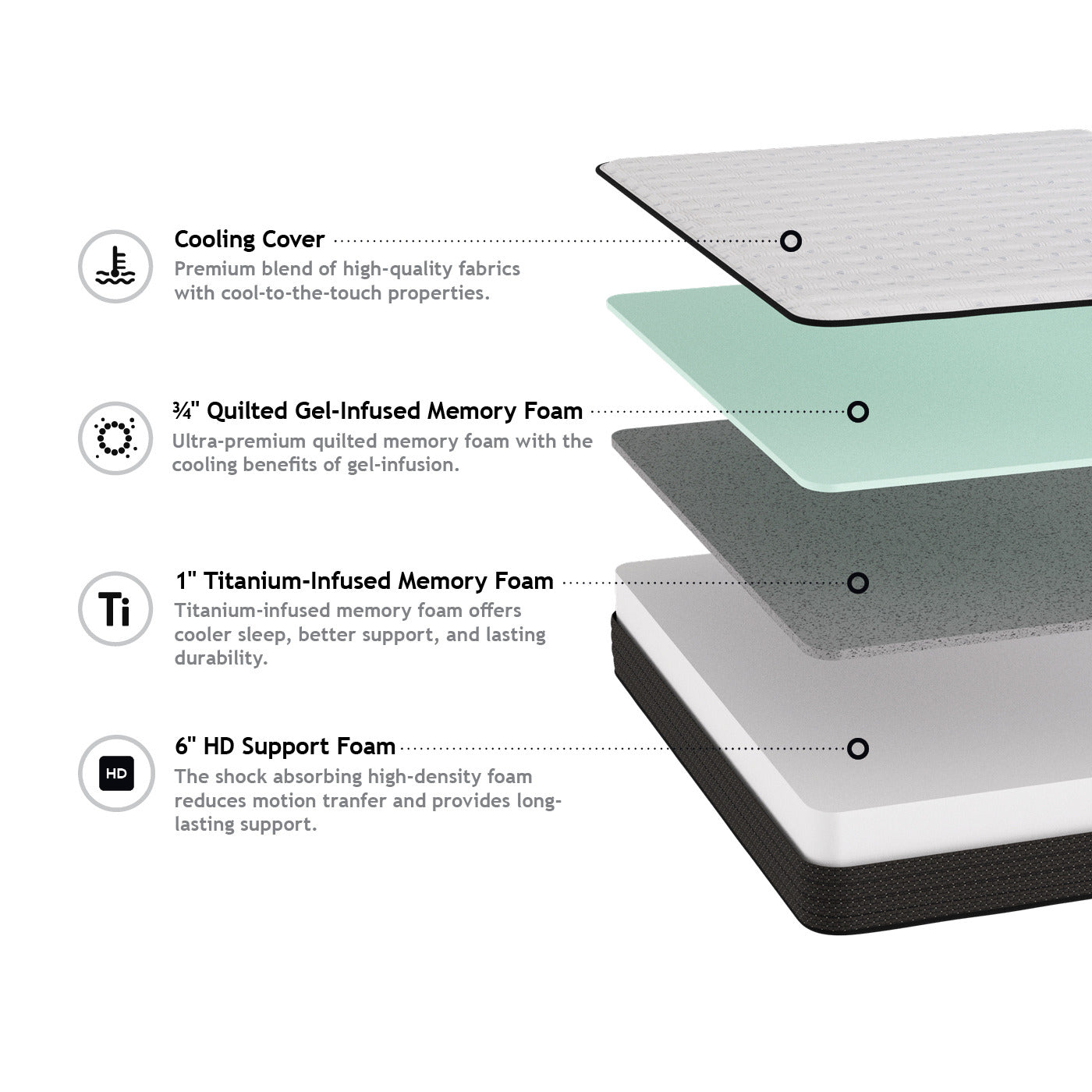 Experience the exceptional support of our Patriot's Choice 8" Firm mattress. This sophisticated sleep solution features titanium-infused memory foam that regulates temperature, complemented by quilted gel-infused memory foam beneath a cooling cover. Crafted with CertiPUR-US certified foams and compatible with adjustable bases, this American-made mattress offers a decade of quality sleep, backed by our 10-year warranty. Also, available in specialized R.V. dimensions for discerning travelers.